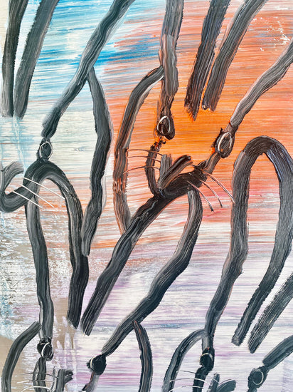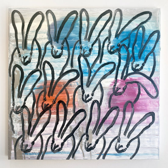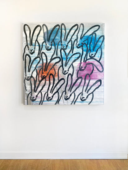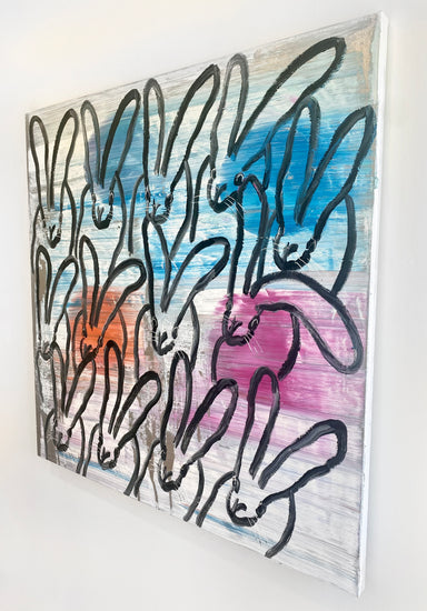 Considered one of the great colorists of his time, Slonem’s neo-expressionist paintings feature an exuberant and bold, fauvist palette to emphasize his beloved menagerie of animals. Through the application of lavish, lush colors, Slonem’s painterly style continues to be fresh and innovative bordering on Pop Art aesthetics. Depicting his signature motifs of repeating whimsical animal imagery, mainly bunnies, birds, and butterflies, the artist’s devotion to nature and its inhabitants are apparent.