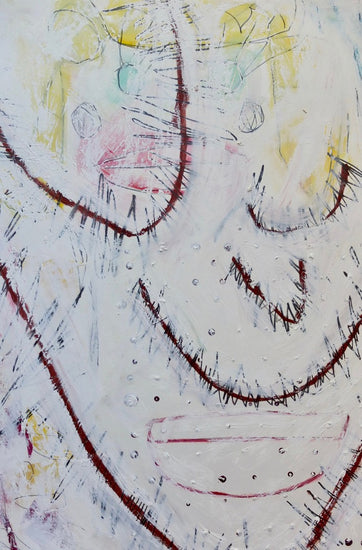 ADAM HANDLER (b.1986) is an American contemporary artist whose work draws from a faux-naïf aesthetic, a style marked by its intentional simplicity and sincerity. Using oil sticks to produce bold lines, vibrant colors, and textured compositions, he achieves an almost childlike directness that belies the deeper, layered narratives of love and loss within each composition. Handler's works embody a deep personal reflection, exploring themes of love, family, and the longing for connections with those he has lost. Through whimsical scenes featuring ghostly figures, he invites viewers to connect with the delicate balance of lightheartedness and sorrow. Handler's vibrant female figures, inspired by the abstract forms of Willem de Kooning, embody his own playful, yet reflective perspective on memory and presence. These figures maintain a raw simplicity that speaks to childhood innocence, which captures the fragile beauty of connection and loss, blending personal memories with universal themes of love and family.