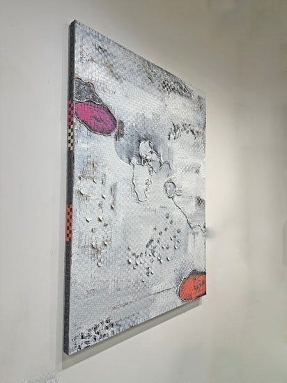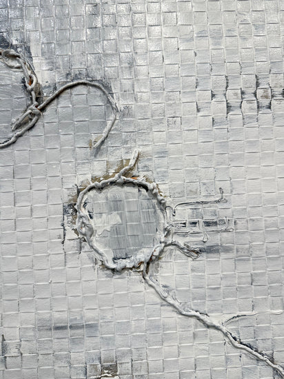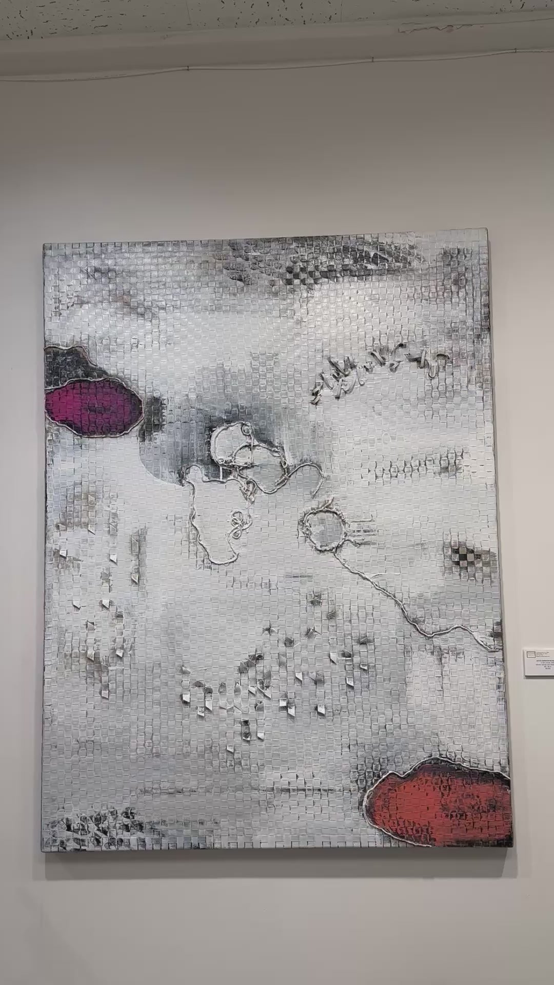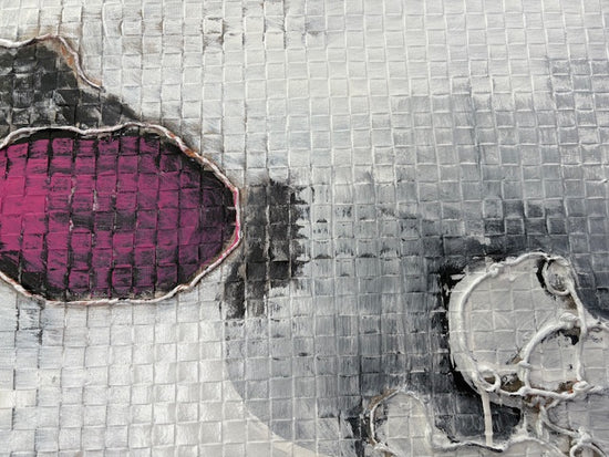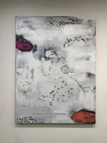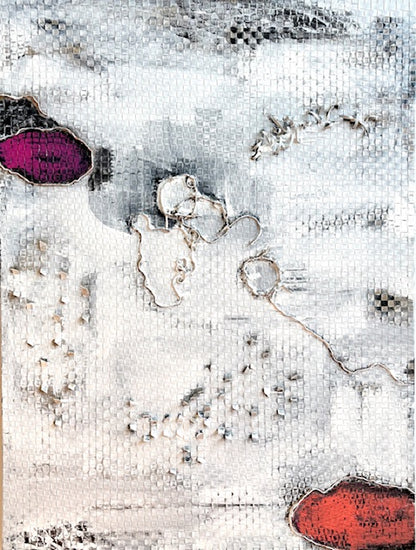 JOYCE BARKER-SCHWARTZ (b. 1950) is a fiber artist renowned for her intricate, multi-step weaving technique, uniquely developed to explore the intersection of thought and form. Through a process rooted in personal reflection and sharp observation, she constructs layered, recurring narratives within her work. Beginning with painting acrylic on canvas, she then cuts the canvas into thin strips, which she meticulously weaves together, introducing a new layer of texture and dimensionality to her compositions. This innovative approach transforms the artwork, blurring the lines between painting and tapestry.