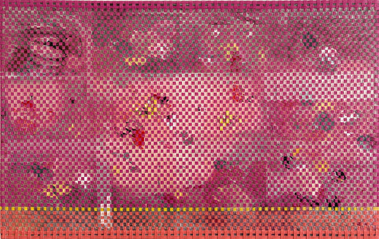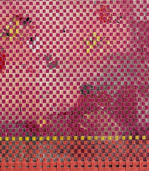 JOYCE BARKER-SCHWARTZ (b. 1950) is a fiber artist renowned for her intricate, multi-step weaving technique, uniquely developed to explore the intersection of thought and form. Beginning with painting acrylic on canvas, Barker-Schwartz then cuts the canvas into thin strips, which she meticulously weaves together, introducing a new layer of texture and dimensionality to her compositions. This innovative approach transforms the artwork, blurring the lines between painting and tapestry.
